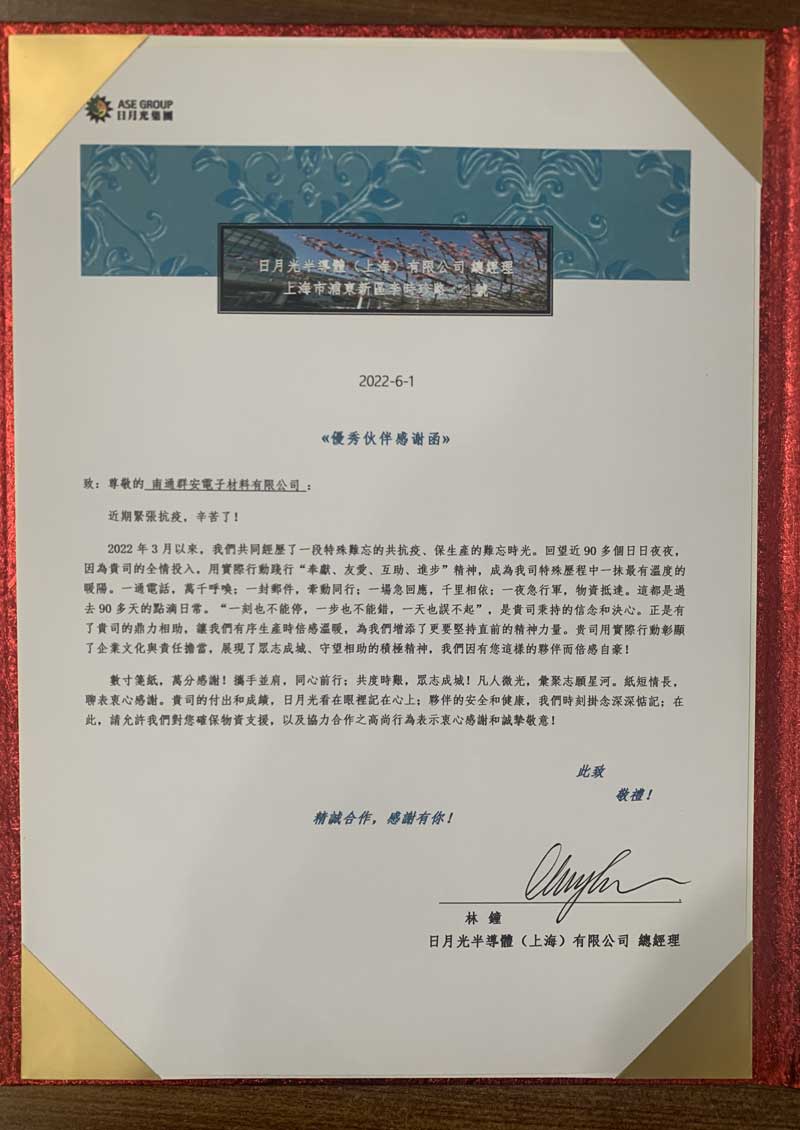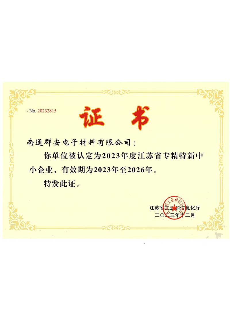 Nantong Chemax Electronic Materials was awarded the title of National High-tech Enterprise in 2020, recognized as a New-Type Technological Innovation Enterprise in 2021, designed a municipal-level engineering research and development center in the same year, and was honored with the title of Provincial Specialized, Refined, Unique and Innovative Small and Medium-sized Enterprise in 2023.